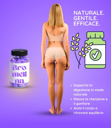 Secondo uno studio italiano pubblicato su Minerva Medica, la bromelina ha dimostrato efficacia sia a livello digestivo che drenante, in particolare nei casi di ritenzione idrica e infiammazione cronica, senza effetti collaterali significativi.
