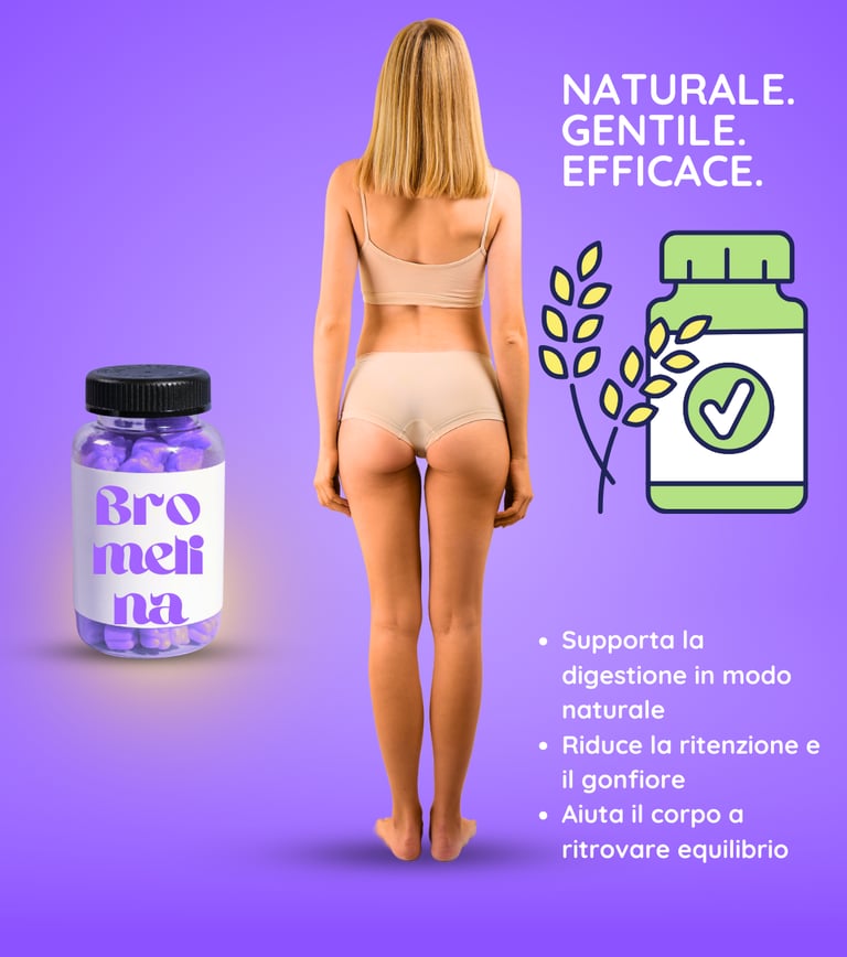 Il mio nutrizionista mi ha spiegato che la bromelina è un enzima naturale estratto dal gambo dell’ananas, conosciuto per i suoi benefici digestivi, antinfiammatori e drenanti. Ma soprattutto, secondo lui, poteva essere utile anche per chi – come me – soffre di ritenzione idrica resistente ai rimedi classici.